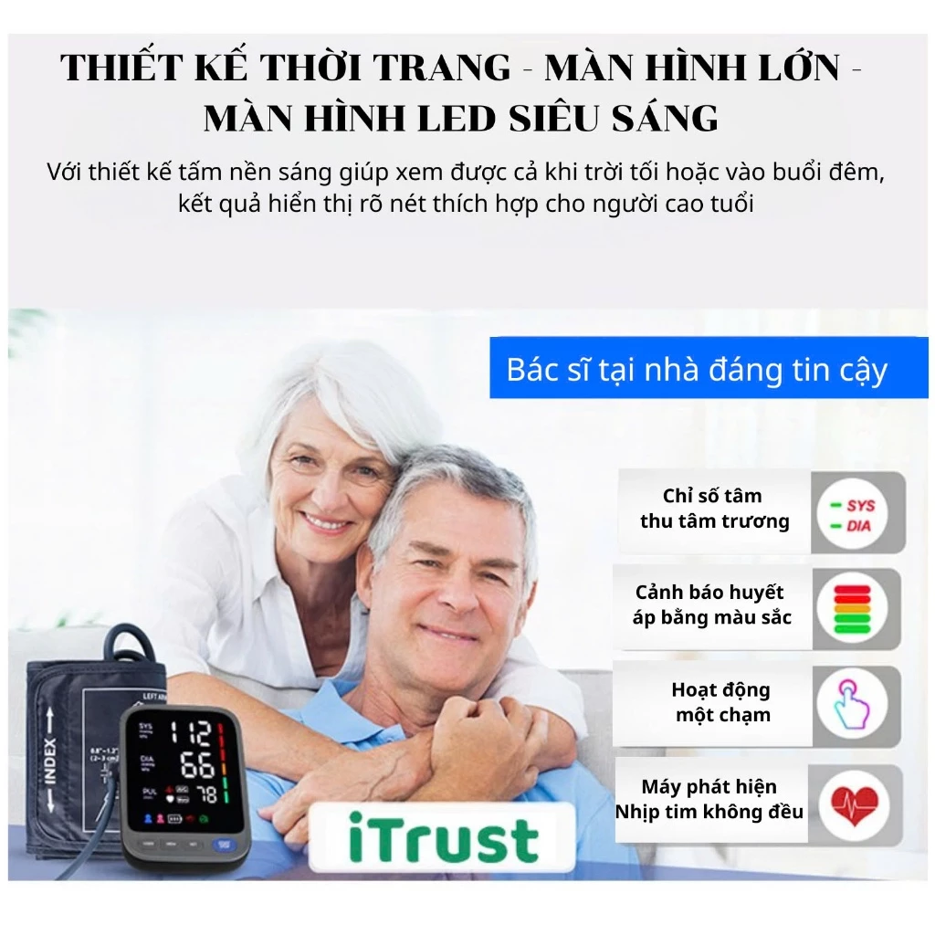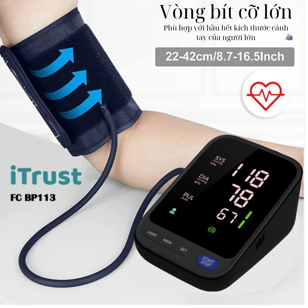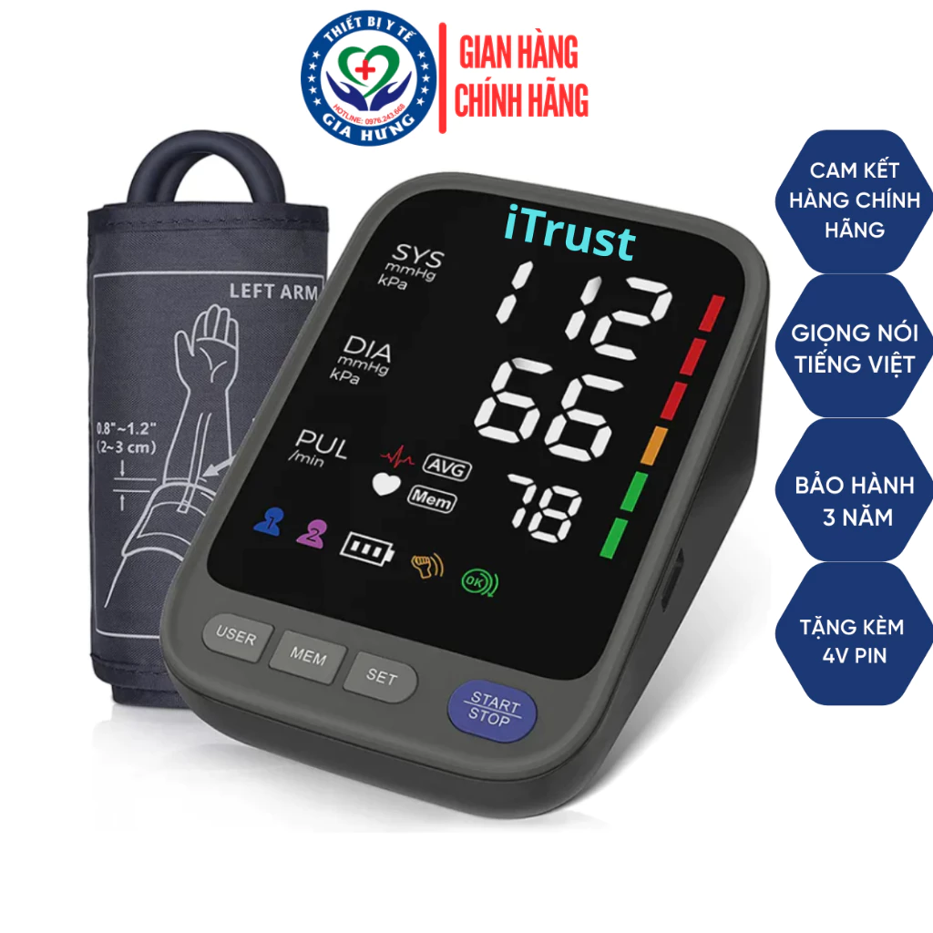 Máy đo huyết áp bắp tay ITrust BP113 – Màn hình led lớn – Giọng nói Tiếng Việt – Màn hình mầu