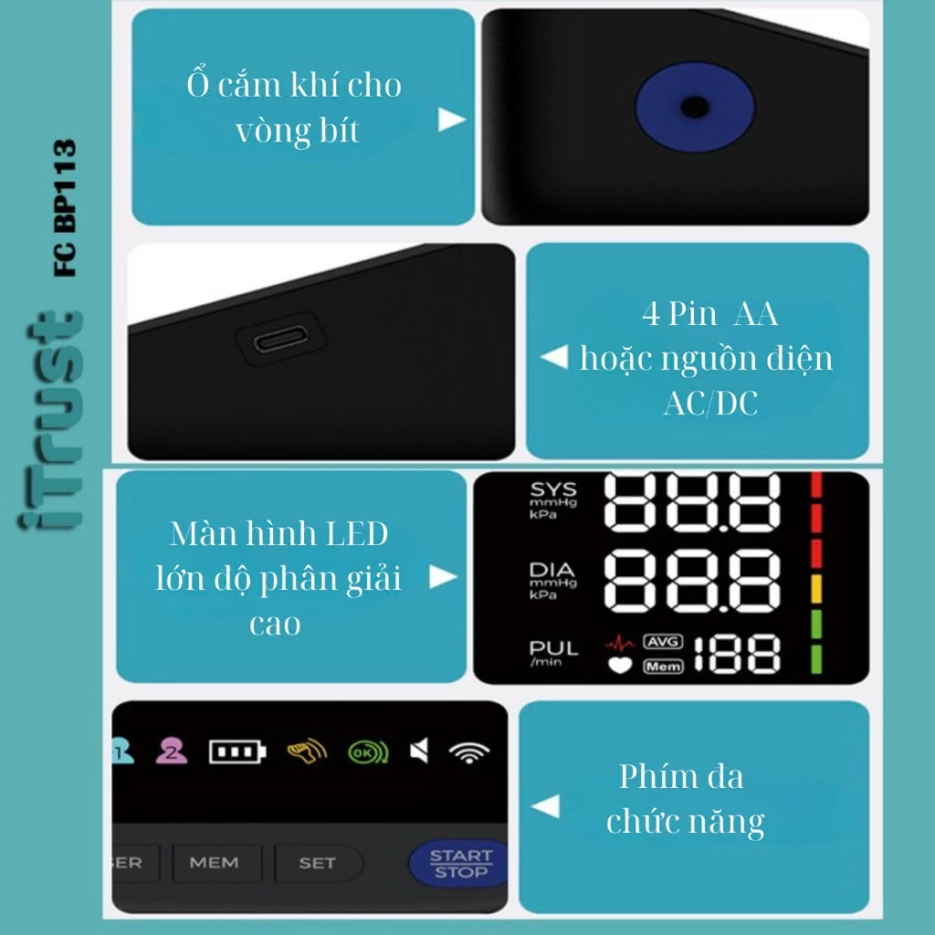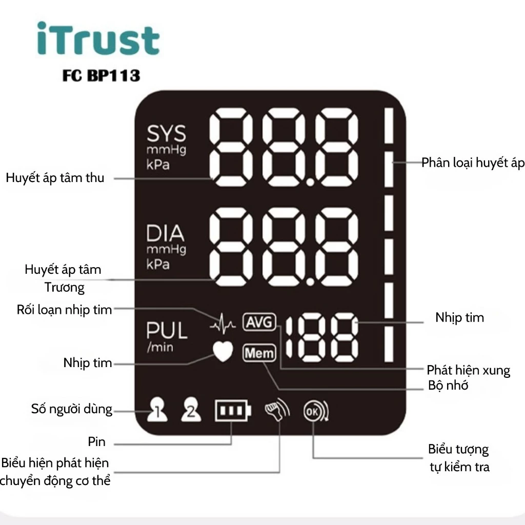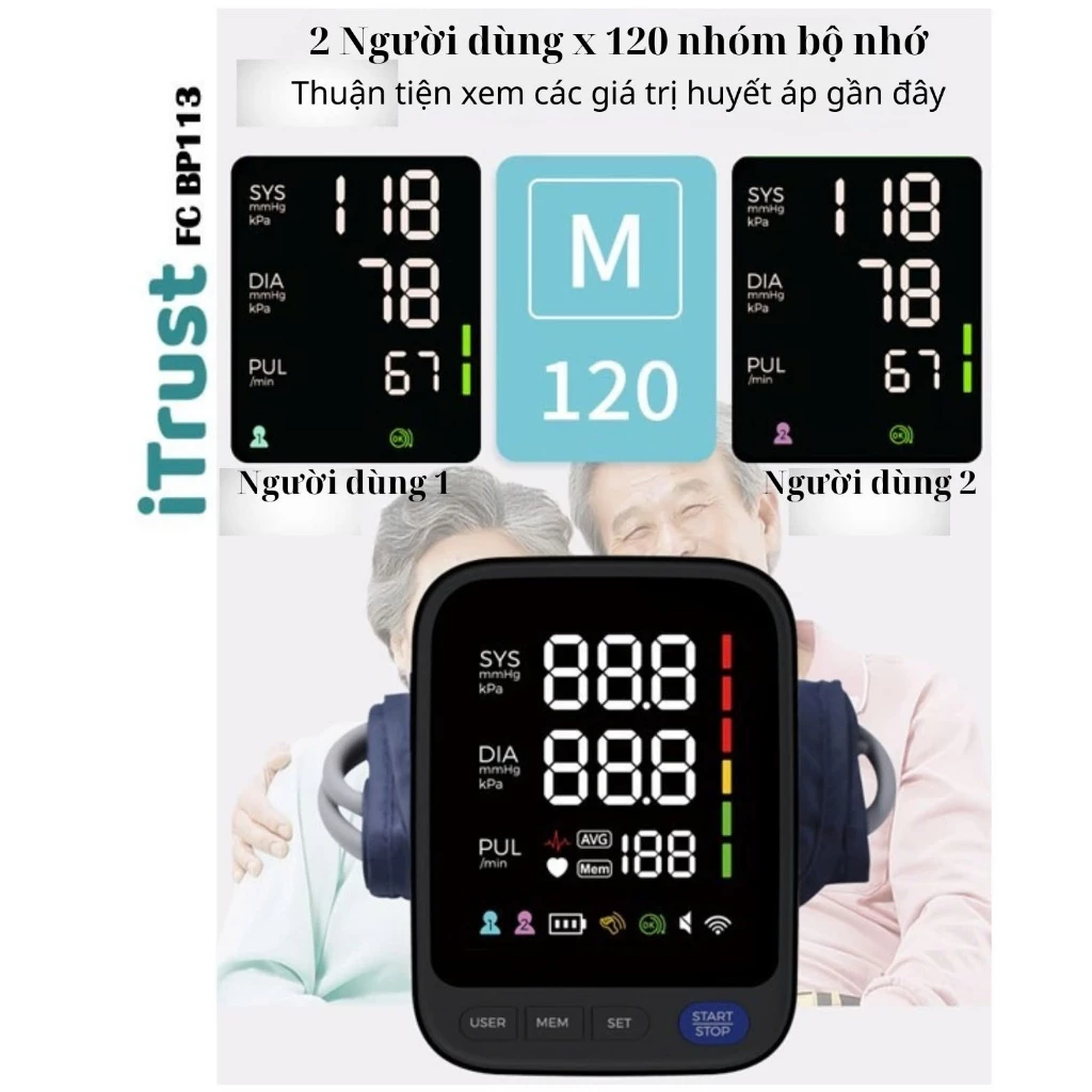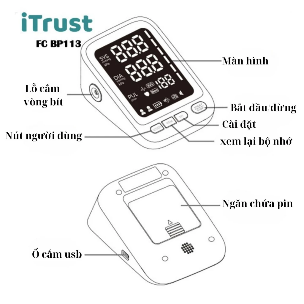 Máy đo huyết áp bắp tay ITrust BP113 – Màn hình led lớn – Giọng nói Tiếng Việt – Màn hình mầu